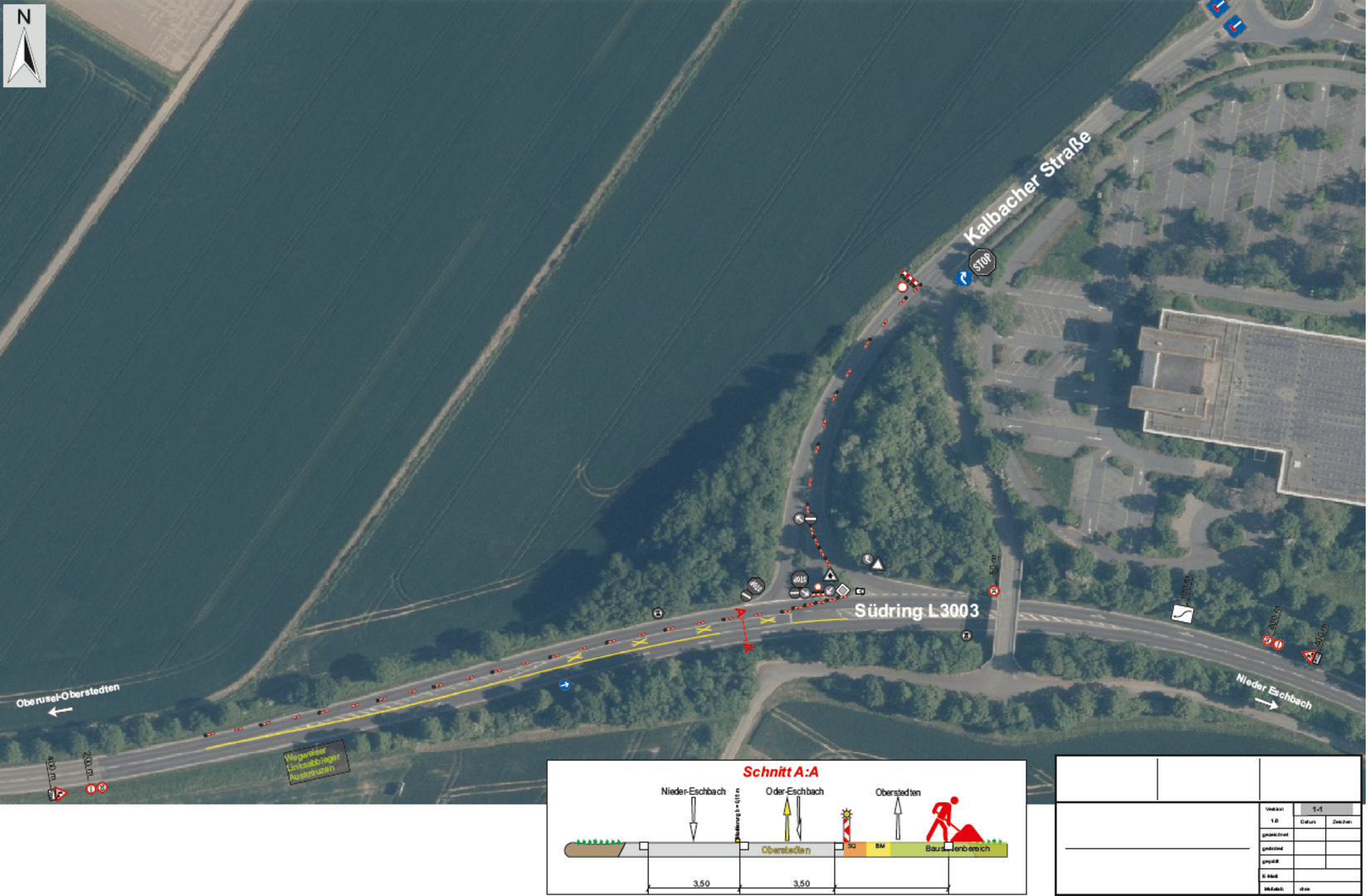 Auch das Ausfahren von der Kalbacher Straße auf den Südring ist während der Bauzeit nicht möglich. Hier erfolgt die Umleitung über die Straße Am Grünen Weg. Das Rechtsabbiegen vom Südring in die Straße Am Grünen Weg bleibt dagegen dauerhaft möglich.