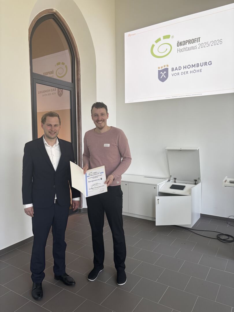 Bürgermeister und Nachhaltigkeitsdezernent Dr. Oliver Jedynak überreichte die Urkunden an die teilnehmenden Betriebe und würdigte deren Einsatz für nachhaltiges Wirtschaften. „ÖKOPROFIT zeigt, wie Unternehmen ökologische Verantwortung und wirtschaftlichen Erfolg miteinander verbinden können“, betonte Jedynak.